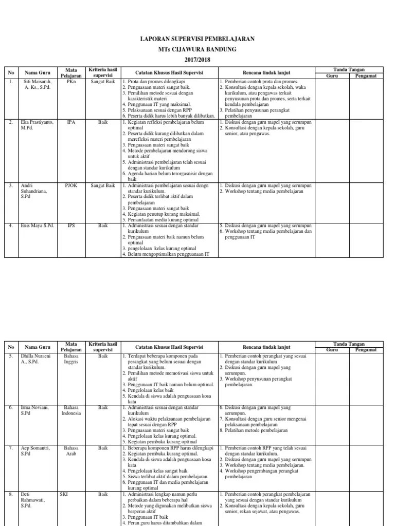 Laporan pelaksanaan pembelajaran di sd …. Adapun contoh jadwal yang dibuat . Buku hasil supervisi kepala madrasah terhadap guru. Serangkaian kegiatan membantu guru mengembangkan kemampuannya mengelola proses pembelajaran untuk mencapai. Jadwal supervisi akademik oleh kepala sekolah/madrasah diamasukkan sebagai lampiran 1 dalam laporan pelaksanaan supervisi.